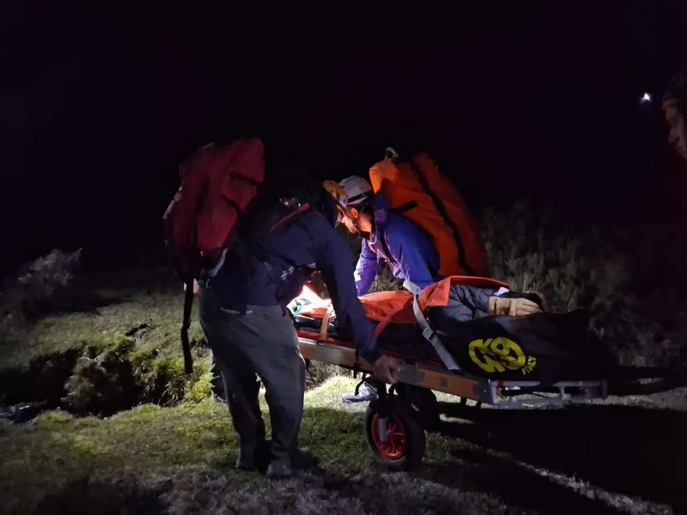 Más de 20 brigadistas realizan rescate de 11 horas a excursionista herido en Mallín de las Nieblas